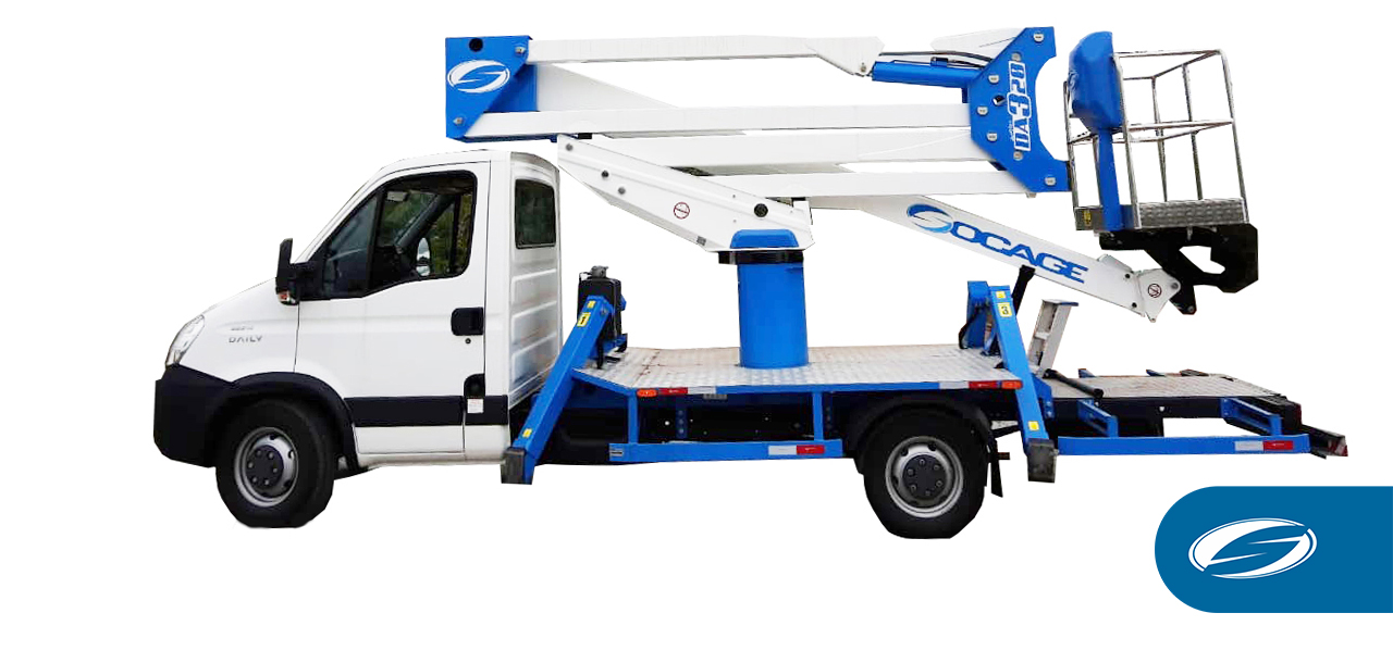 É uma plataforma elevatória capaz de obter uma altura de trabalho de 20 m. Com um alcance lateral de 9,5m, capacidade no cesto de 225 kg (02 operadores + material + ferramentas), sem limitações em toda a área de trabalho aéreo.